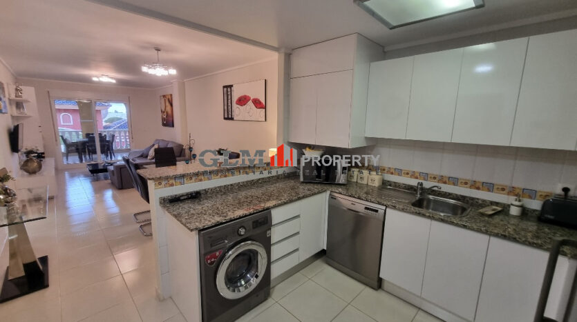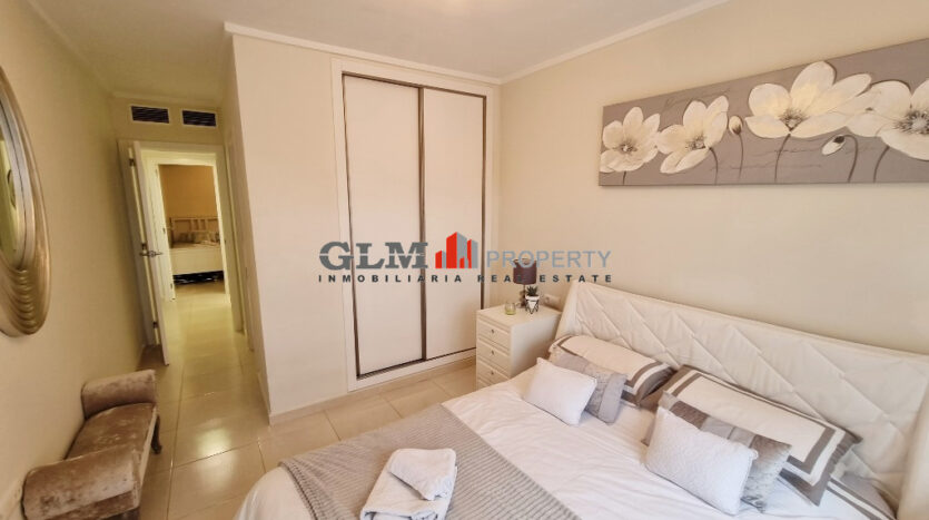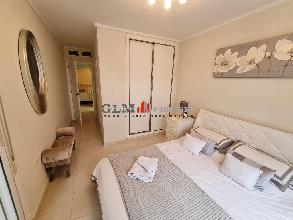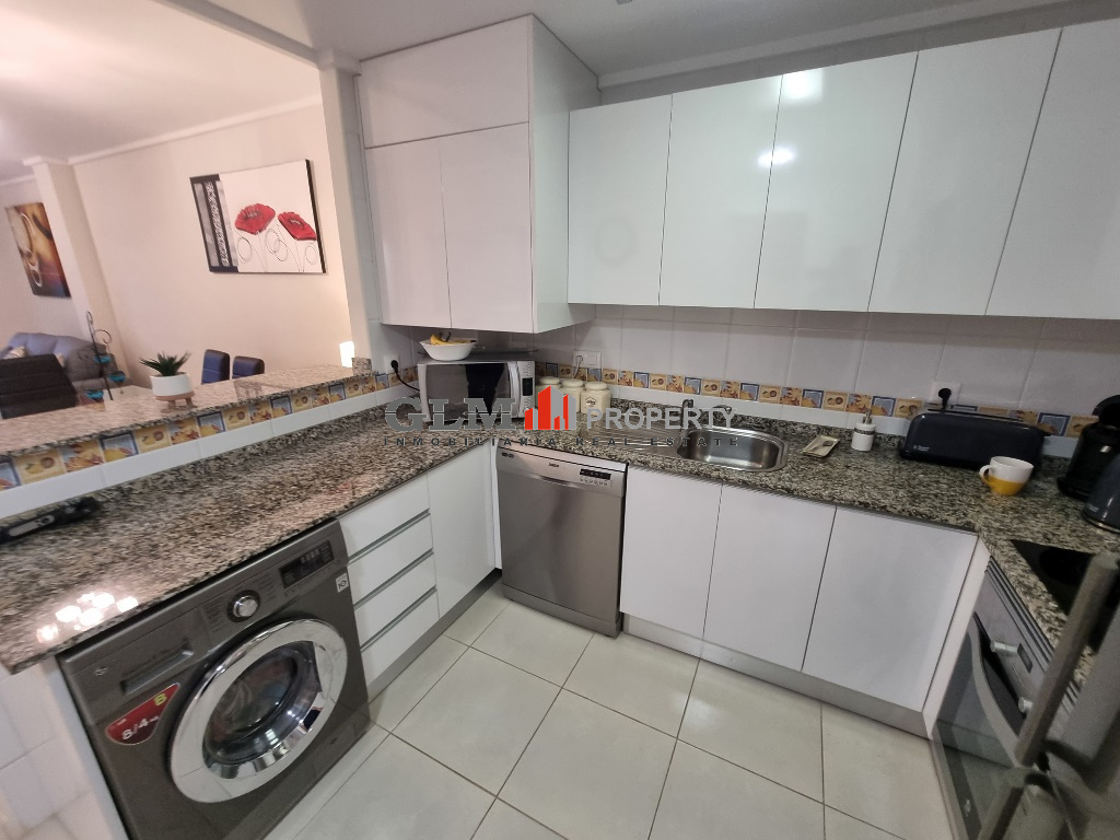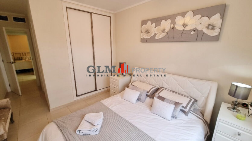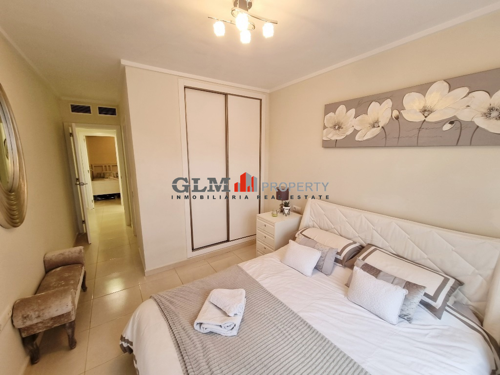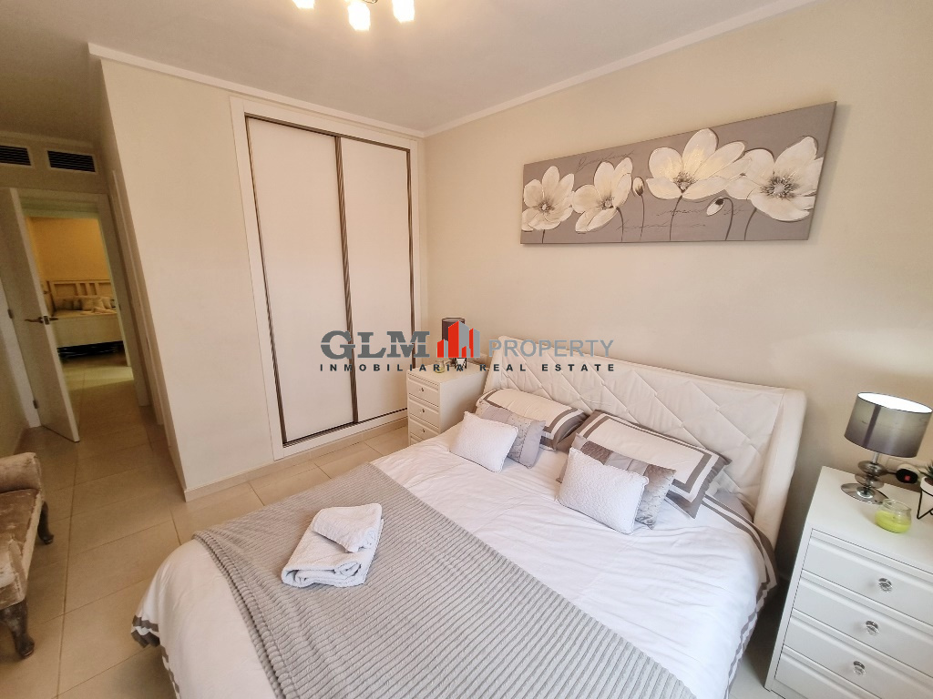 First floor apartment on the popular Puerto Marina complex. Spacious outdoor space when entering with a convenient storage room. As you walk in you are immediately drawn to the spacious open-plan kitchen, dining and lounge area. There are 3 double bedrooms with fitted wardrobes and two bathrooms.The property is sold fully furnished. The Residential benefits from several communal pools and these are surrounded by well-maintained communal garden. The complex is a few minutes’ walk from the square, where there are shops, supermarket and many restaurants. Within walking distance to 5 km promenade of beautiful beaches with bars and water sports.