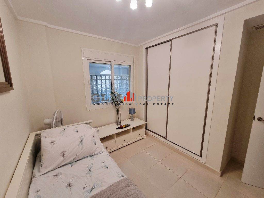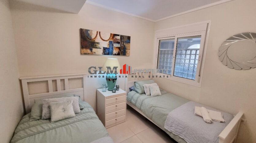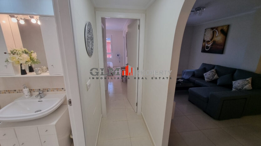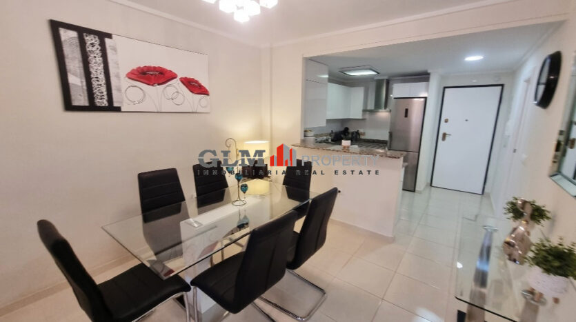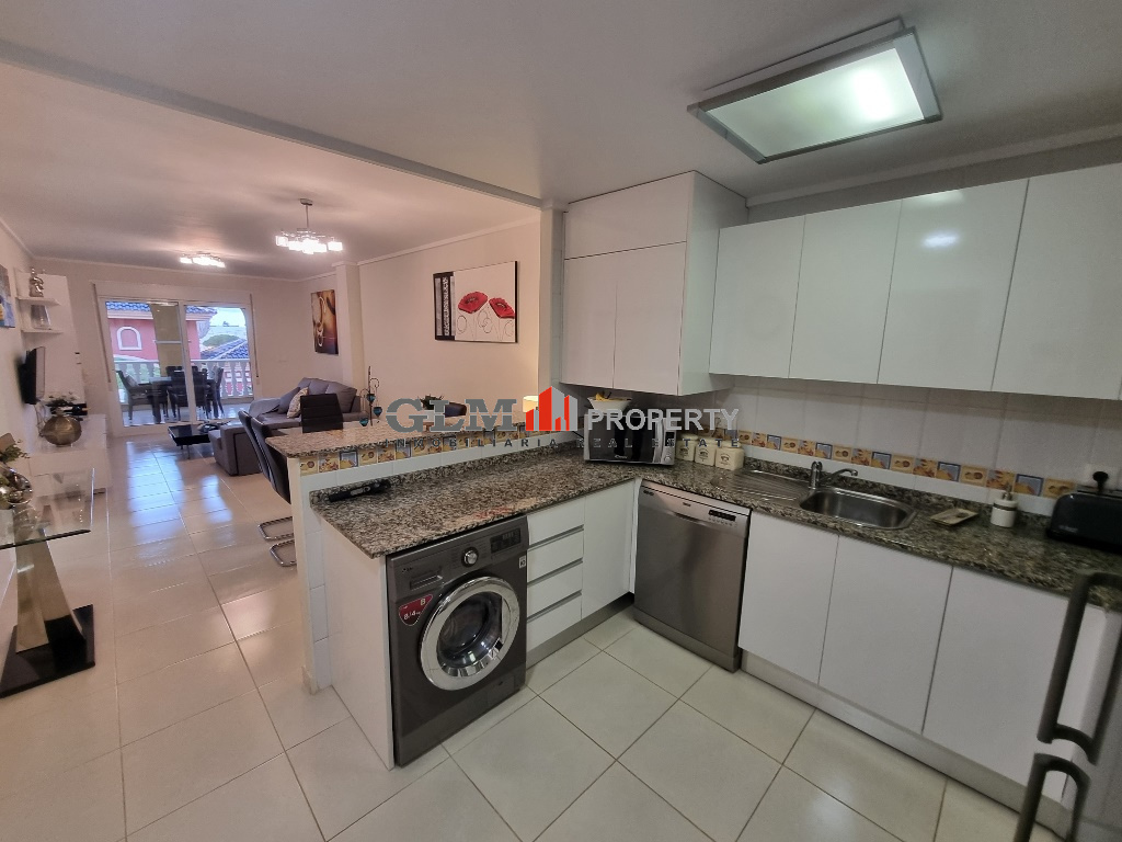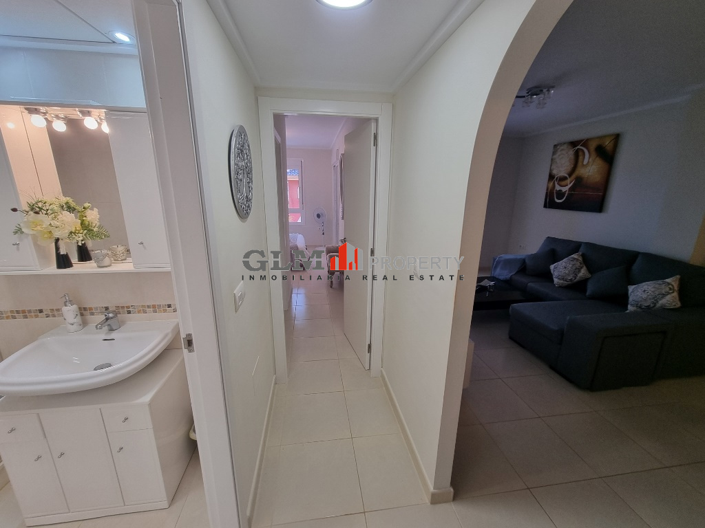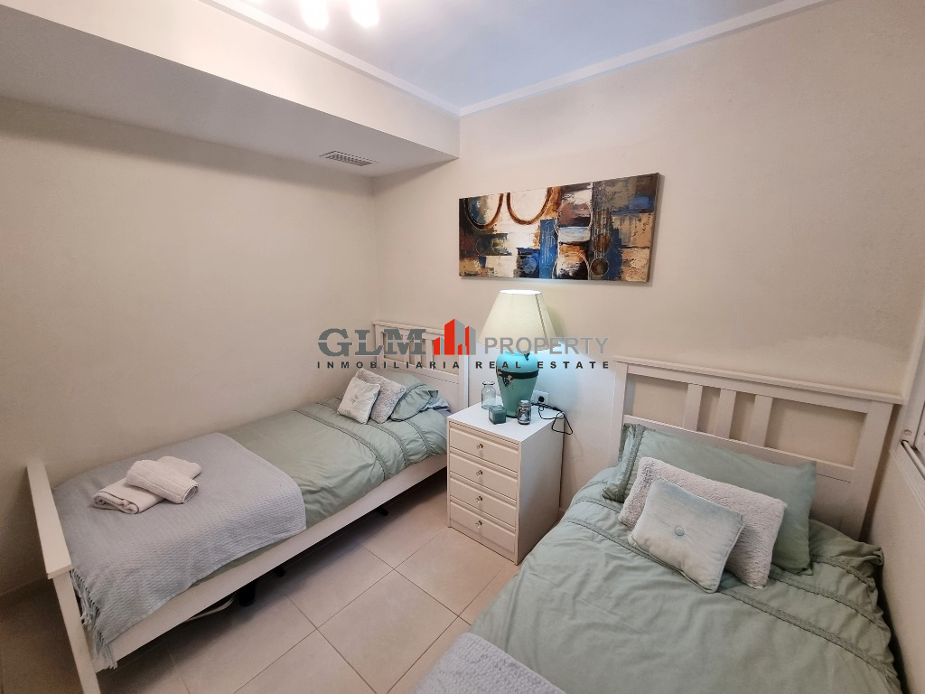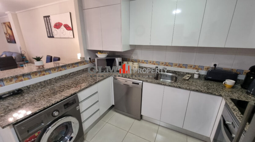 First floor apartment on the popular Puerto Marina complex. Spacious outdoor space when entering with a convenient storage room. As you walk in you are immediately drawn to the spacious open-plan kitchen, dining and lounge area. There are 3 double bedrooms with fitted wardrobes and two bathrooms.The property is sold fully furnished. The Residential benefits from several communal pools and these are surrounded by well-maintained communal garden. The complex is a few minutes’ walk from the square, where there are shops, supermarket and many restaurants. Within walking distance to 5 km promenade of beautiful beaches with bars and water sports.