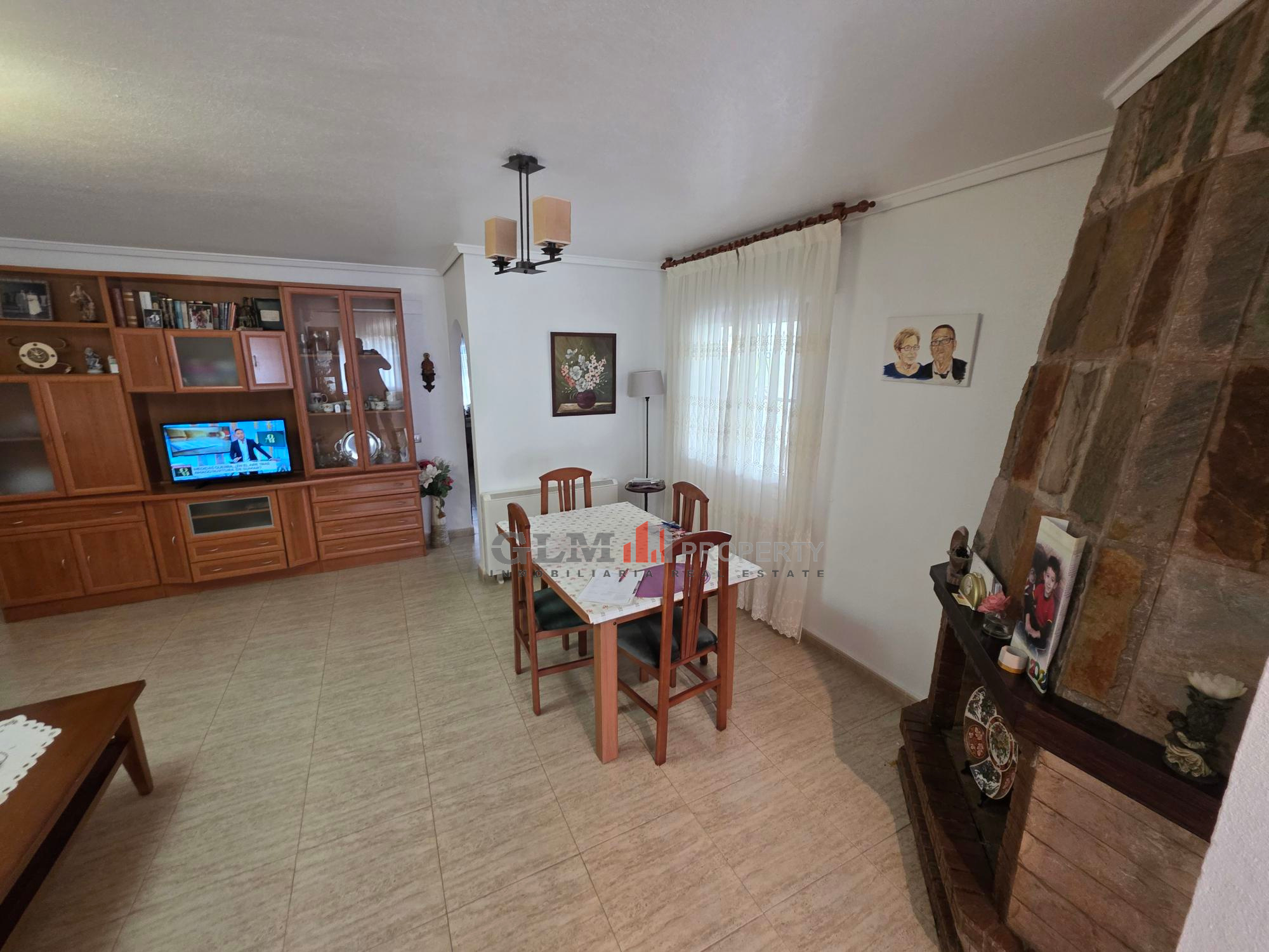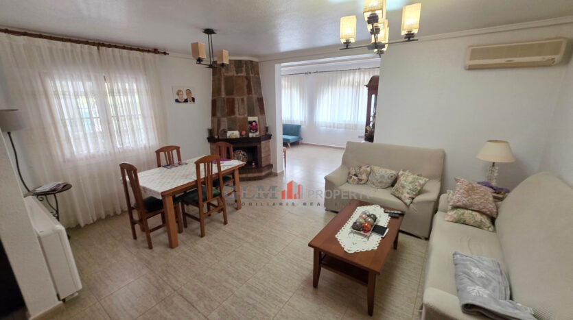 This villa for sale in Los Narejos welcomes you with a bright and spacious living room, complete with a cozy fireplace—perfect for year-round comfort.
